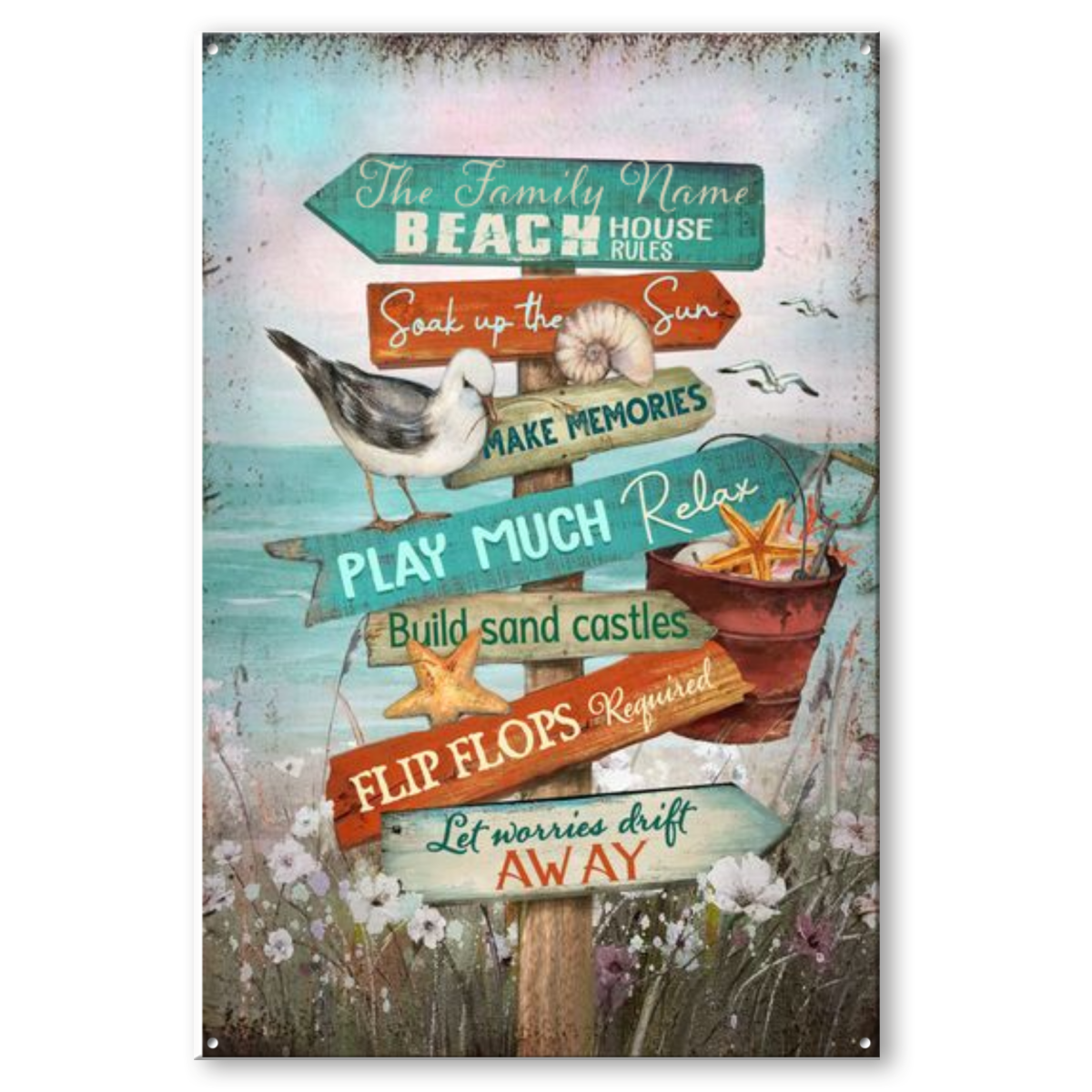 Personalized Beach House Rules Metal Sign, Custom Beach House Decor, Welcome to Beach House Metal Sign