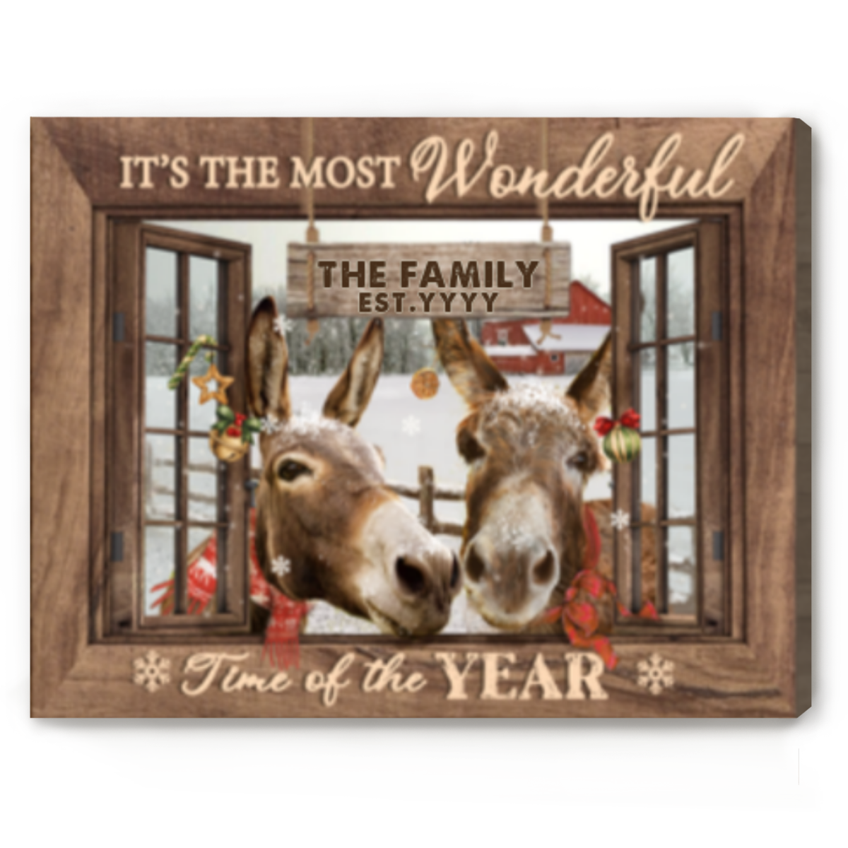 Donkey Christmas Wall Art, Custom Family Name Sign, Farmhouse Donkey Christmas Wall Decor, Personalized Last Name Sign, It’s The Most Wonderful Time Christmas Canvas