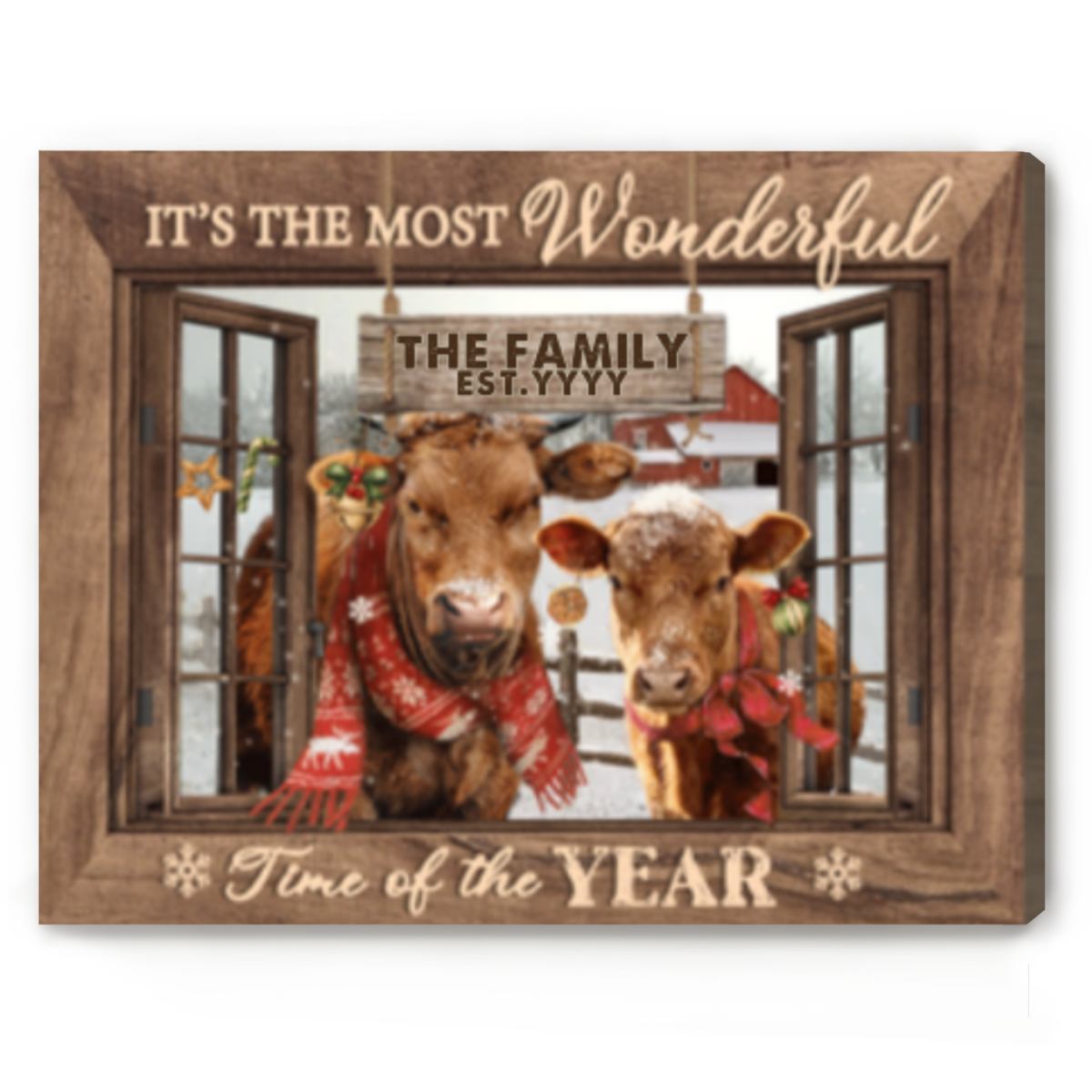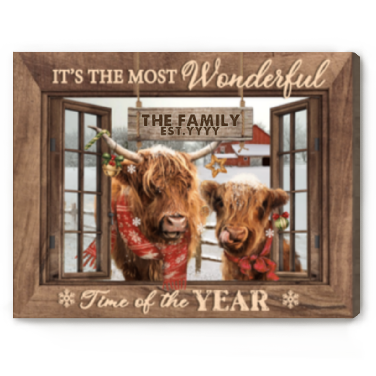 Highland Cattle Christmas Wall Art, Custom Family Name Sign, Farmhouse Christmas Wall Art, Personalized Last Name Sign, It’s The Most Wonderful Time Christmas Canvas