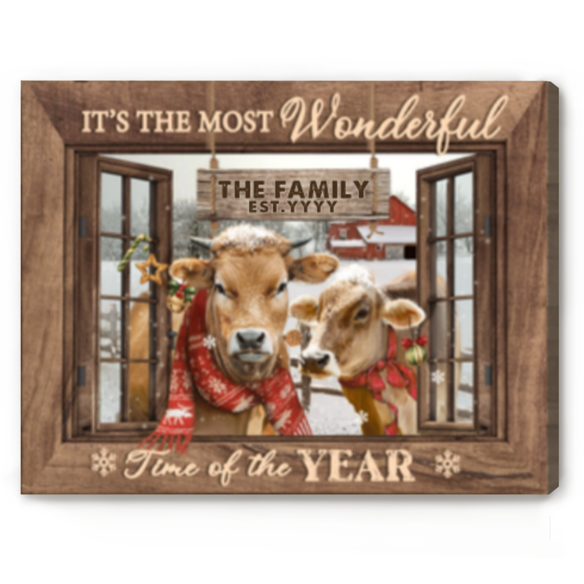 Jersey Cow Christmas Wall Art, Custom Family Name Sign, Jersey Cow Christmas Decor, Personalized Last Name Sign, It’s The Most Wonderful Time Christmas Canvas