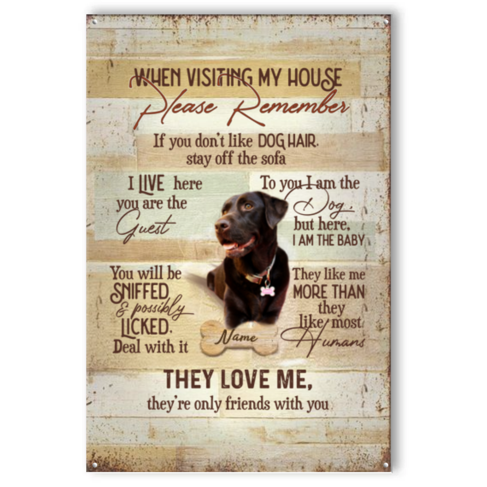 When Visit My House Please Remember Personalized Metal Sign, Funny Metal Sign For Dog Owner, Custom Gift For Dog Lovers
