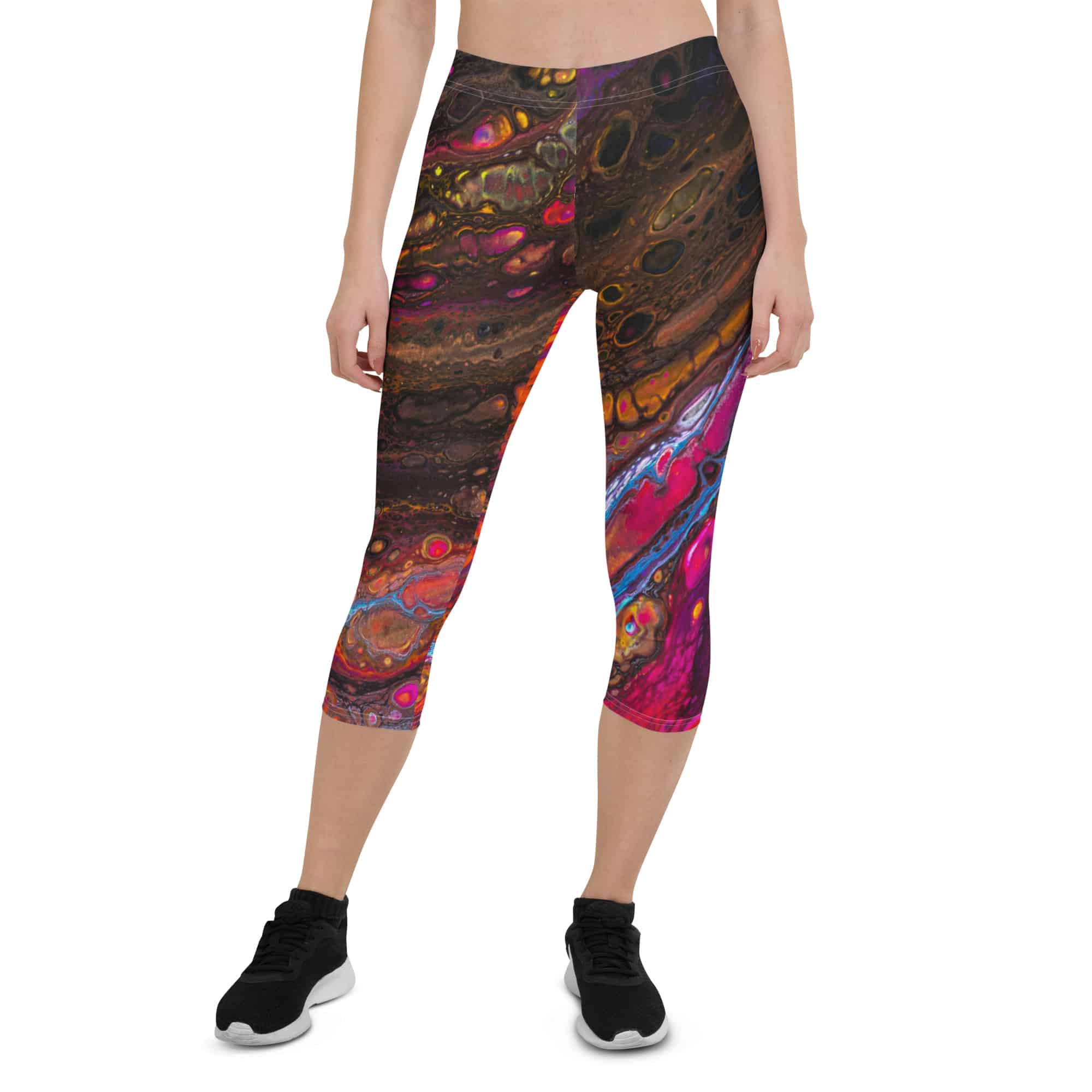Abstract Saturated Multicolor Capri Leggings – Soft & Stretchy