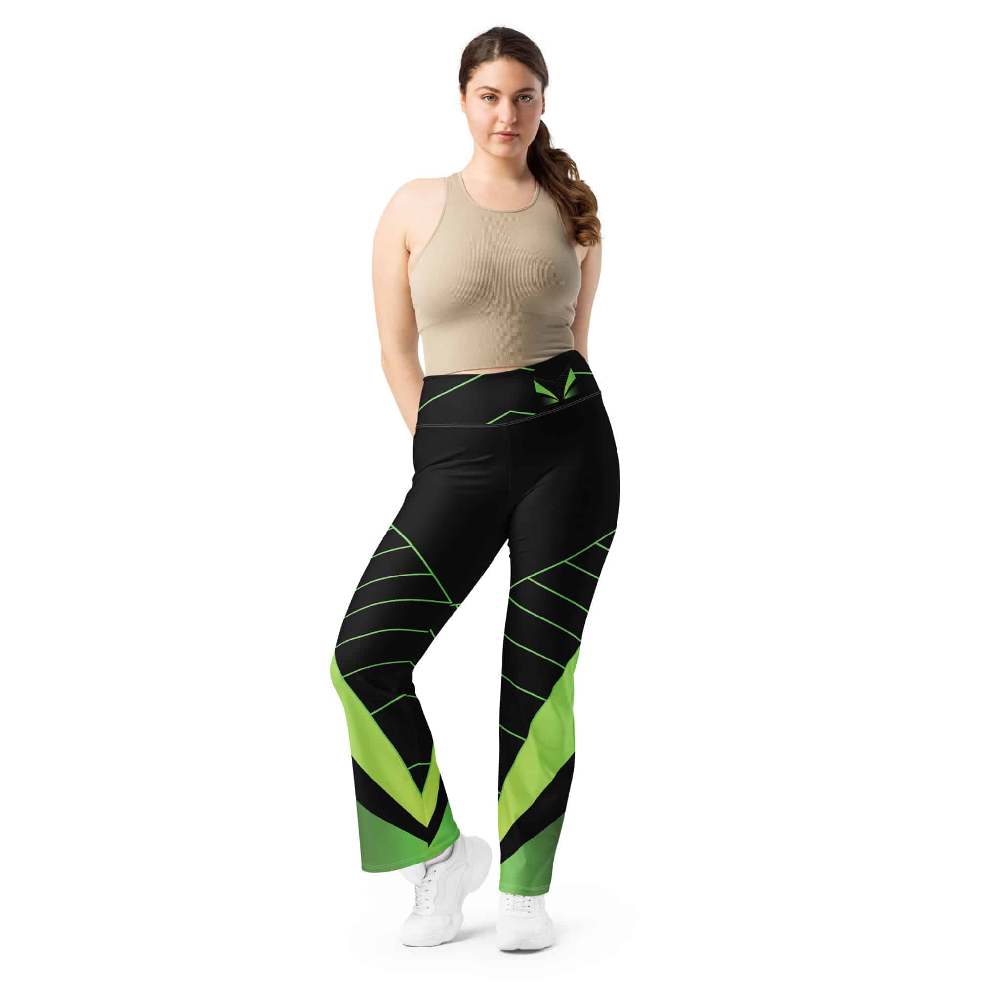 Women’s Black & Green Flare Leggings for Stylish Comfort