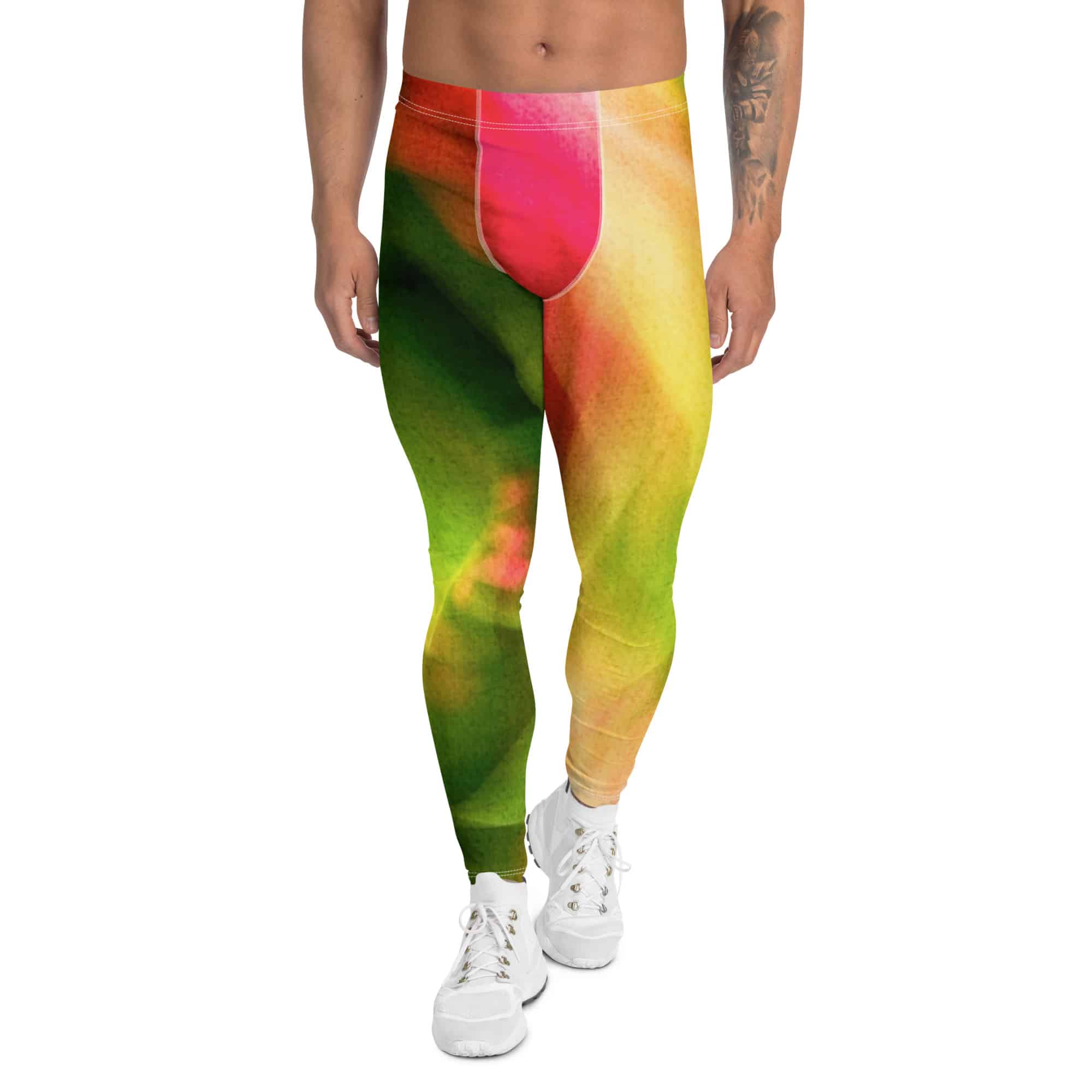 Men’s All Over Print Green and Pink Flower Leggings