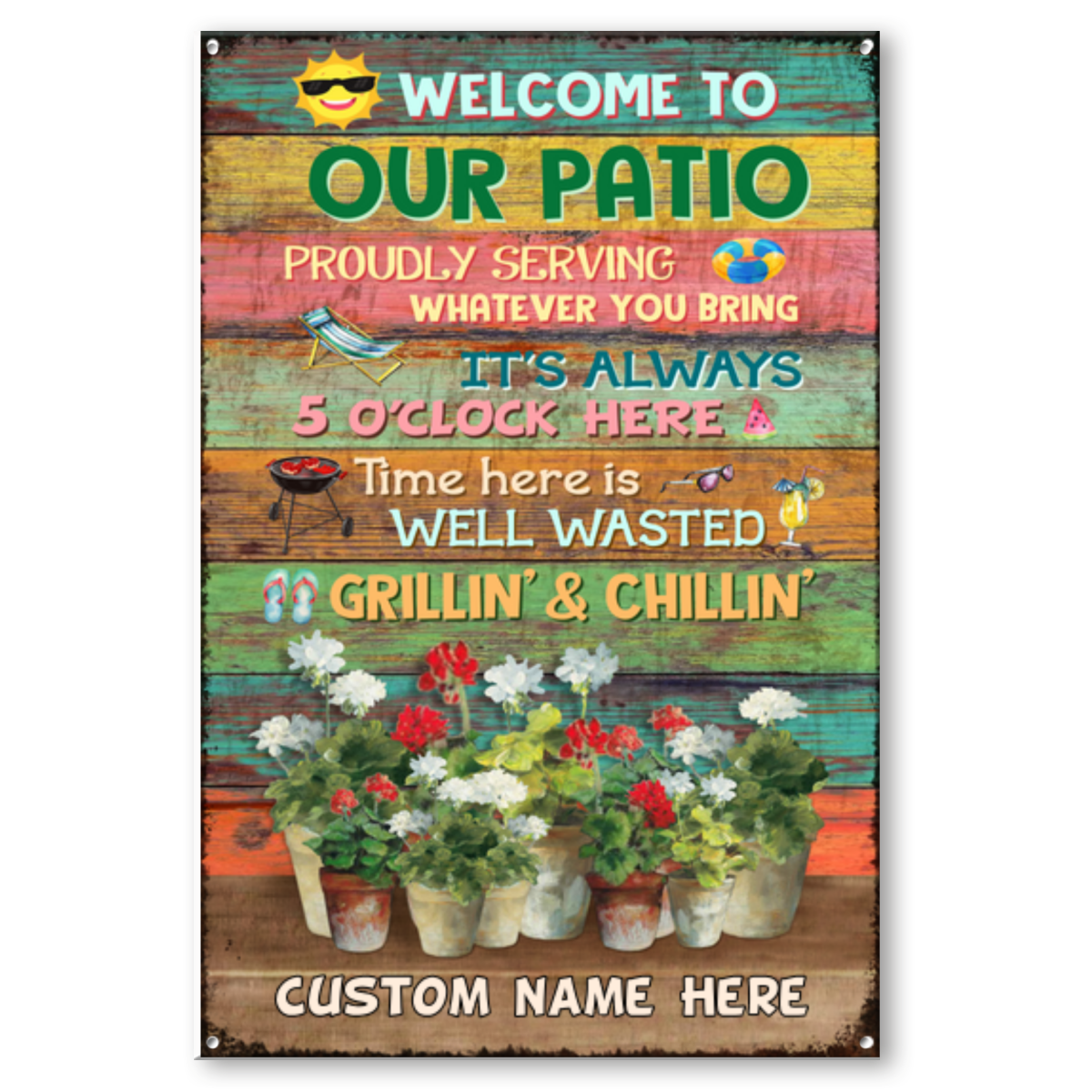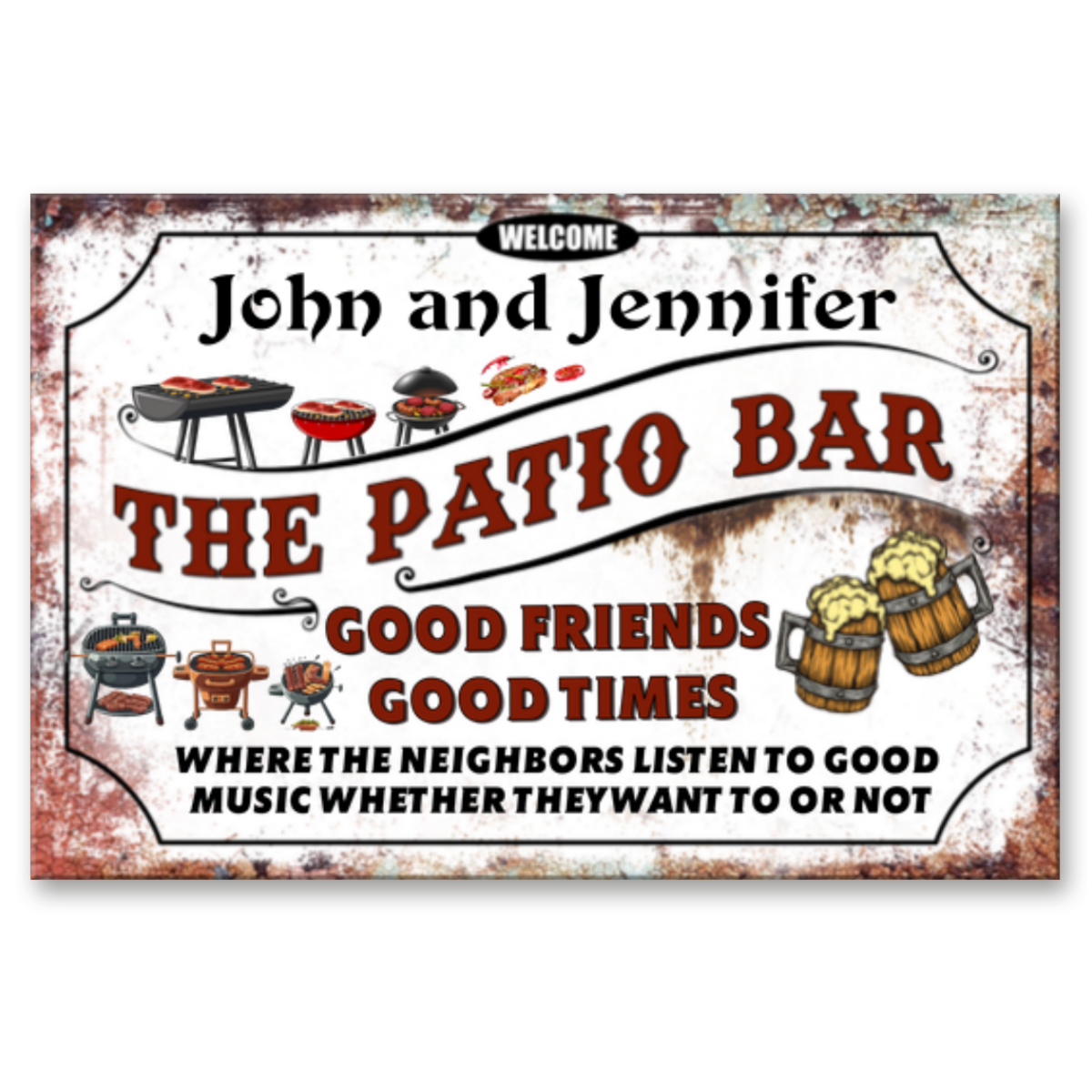 Welcome To Our Patio Custom Name Metal Sign