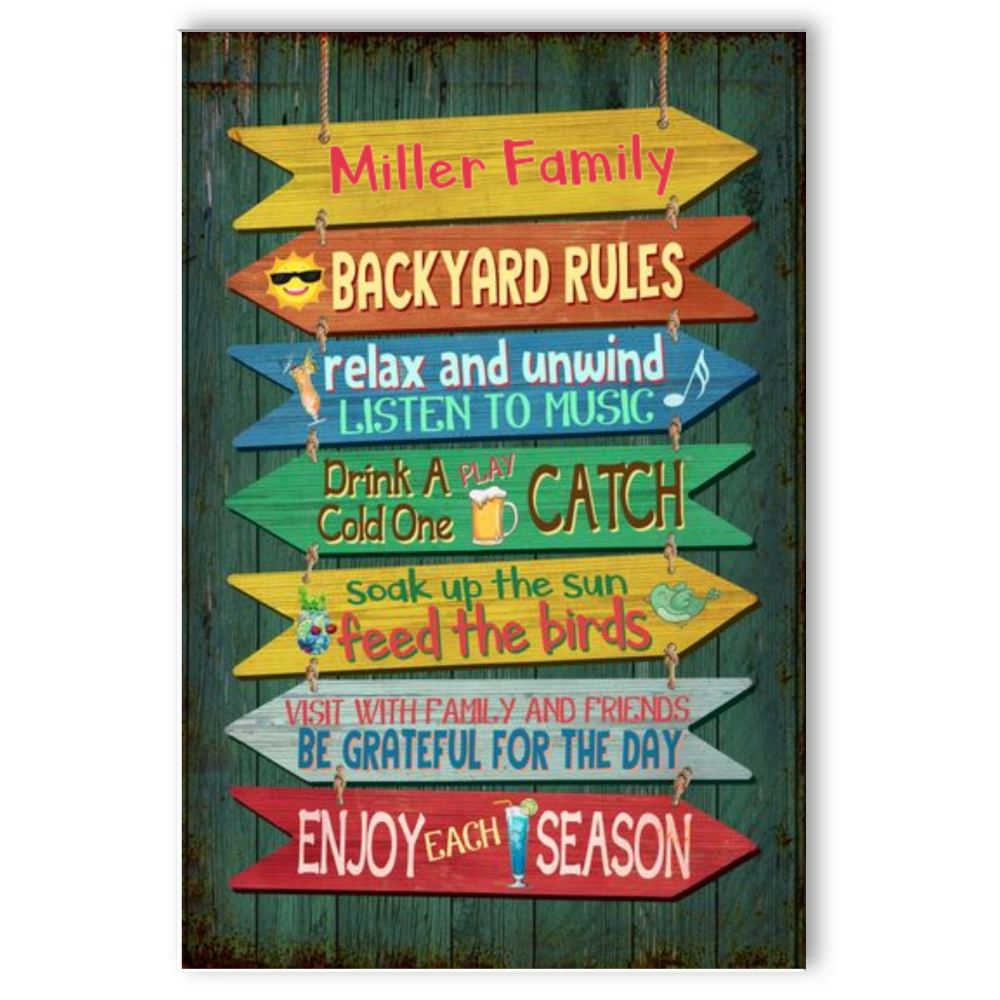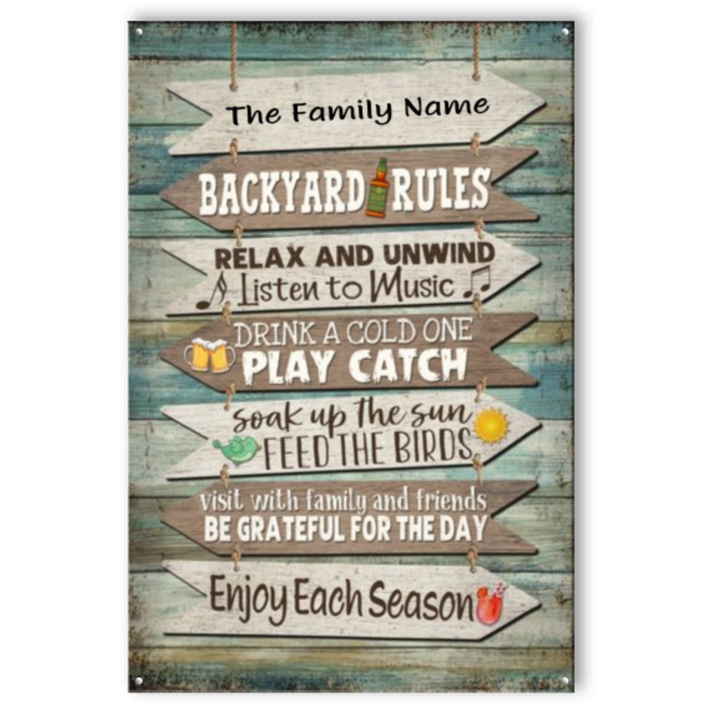 Backyard Rules Metal Sign With Custom Name, Outdoor Backyard Decorations