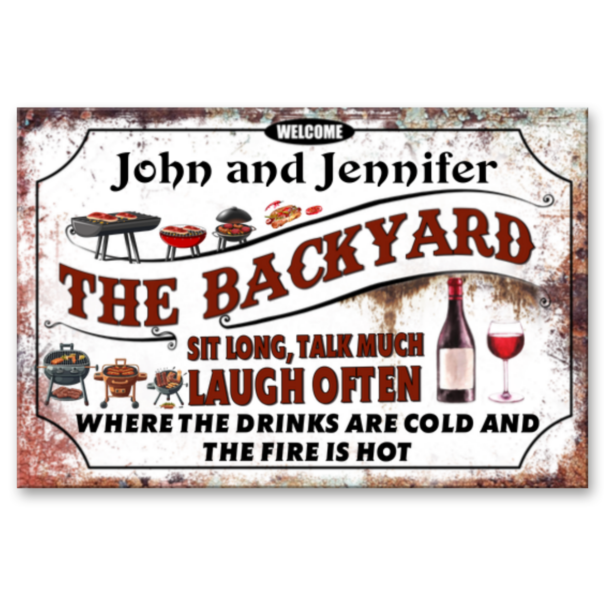 Personalized Backyard Rules Metal Sign, Welcome to Backyard Metal Sign