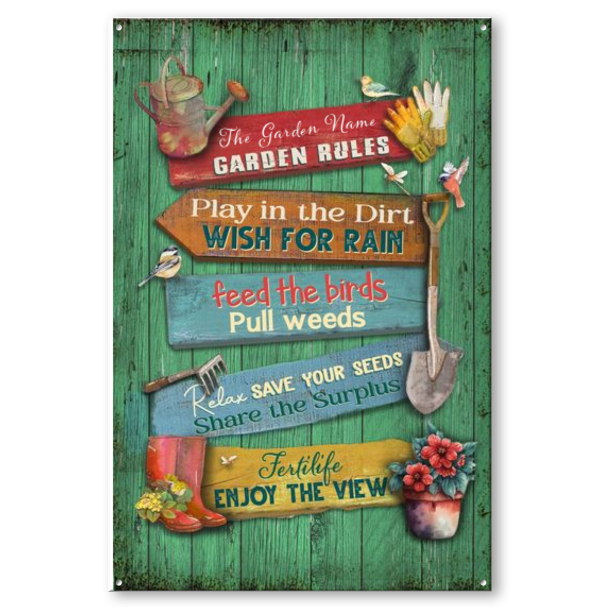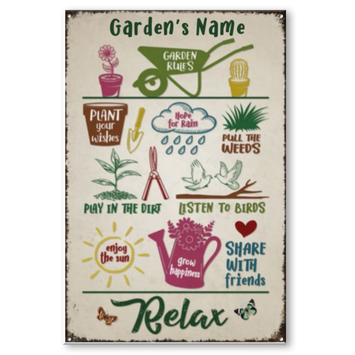 Personalized Garden Rules Classic Metal Sign, Custom Garden Sign With Name, Best Gifts For Gardeners