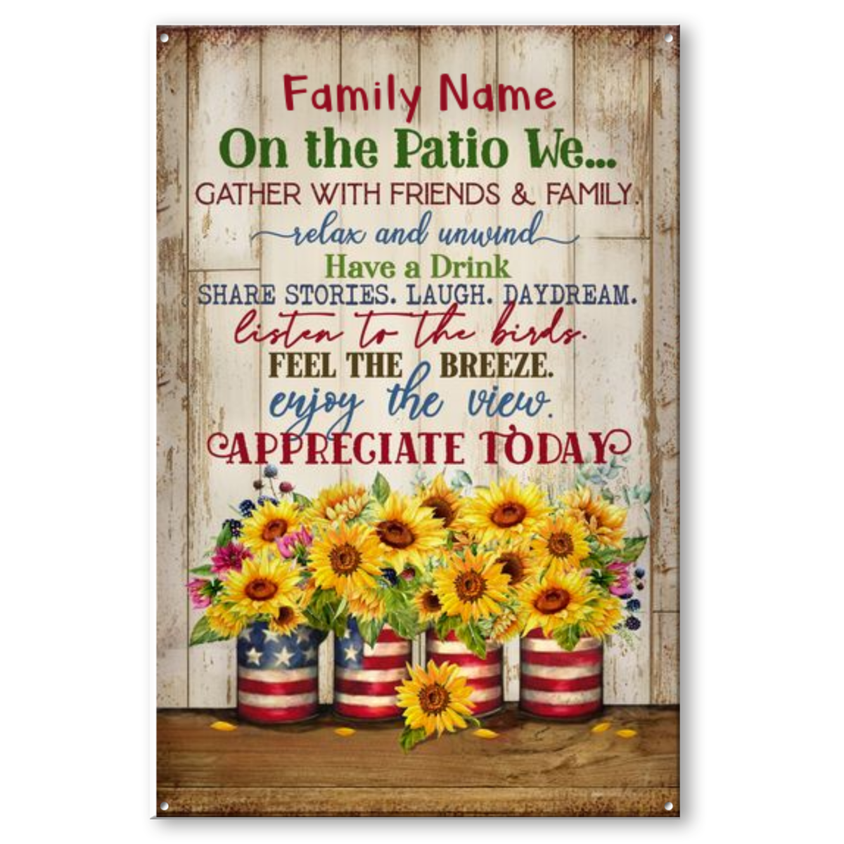 On The Patio We Gather With Friends And Family Metal Sign, Patio Sign With Personalized Name, Patio Outdoor Decoration