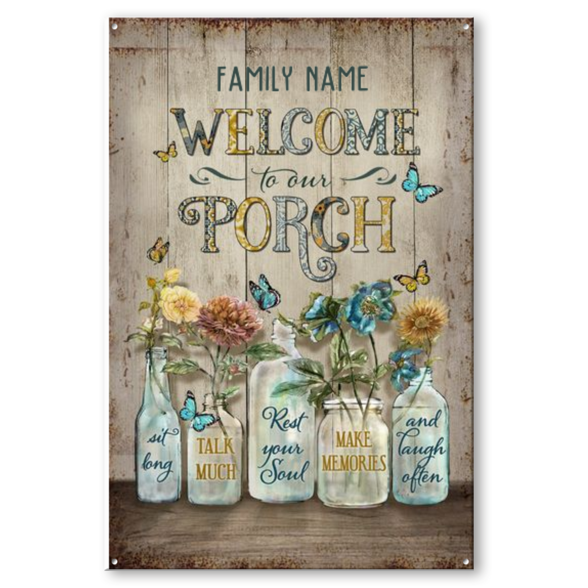 Welcome To Our Porch Personalized Metal Sign, Floral Porch Sign With Custom Name, Porch Outdoor Decoration