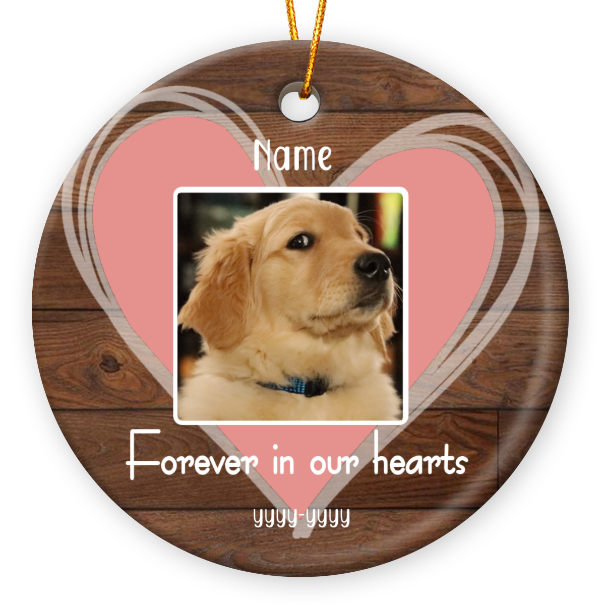 Pet Loss Ceramic Ornament With Photo, Personalized Pet Memorial Christmas Gift, Forever In Our Heart Ceramic Ornament