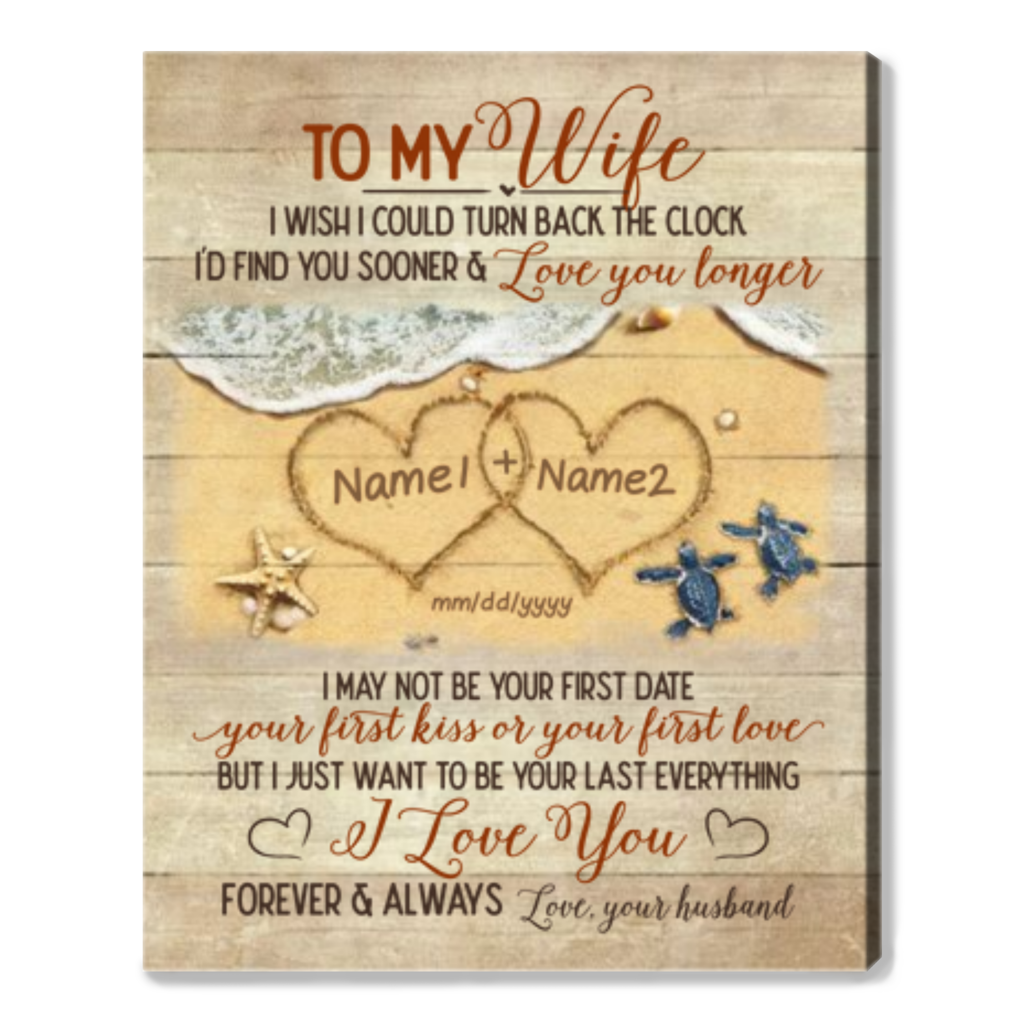 To My Wife – Personalized Heart In Sand Canvas With Name – Gifts For My Wife From Husband