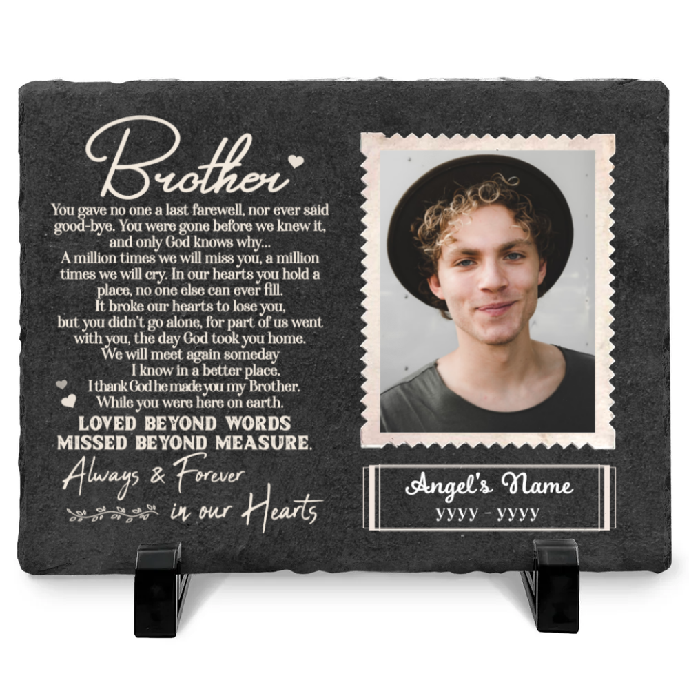 Brother You Gave No One Last Farewell – Personalized Photo Brother Memorial Garden Stone – Rectangle Slate – Gifts for Loss Of Brother