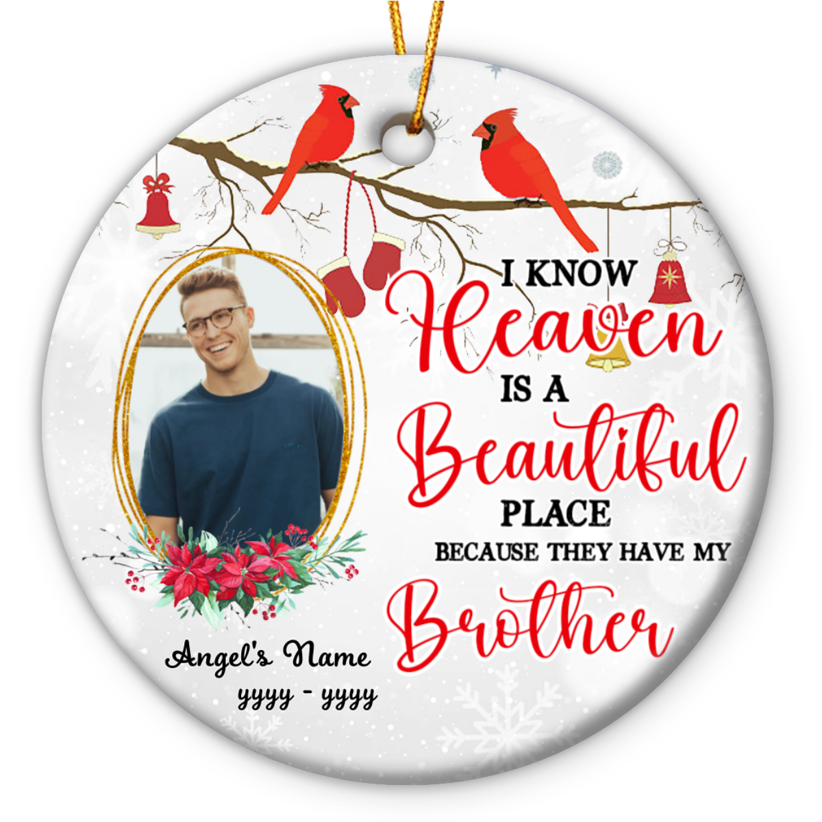 Heaven Is A Beautiful Place Personalized Brother Memorial Photo Ornament – Loss Of Brother Sympathy Gifts