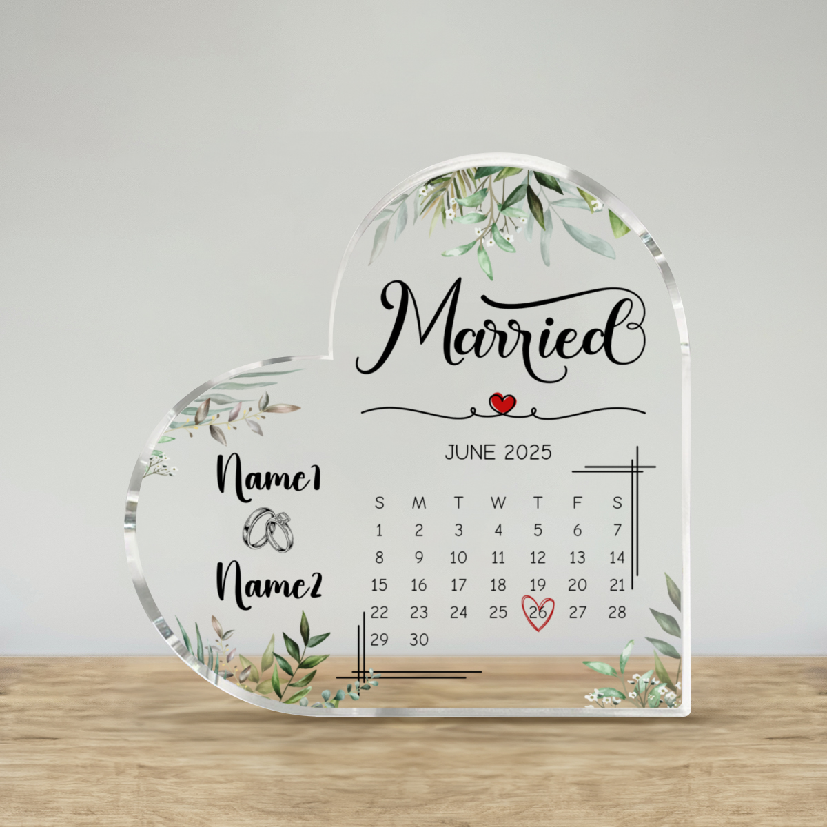 Personalized Wedding Gift, Married Calendar Acrylic Plaque, Wedding Gift for Couple, Married Plaque Gift for Couple, Wedding Keepsake Gift