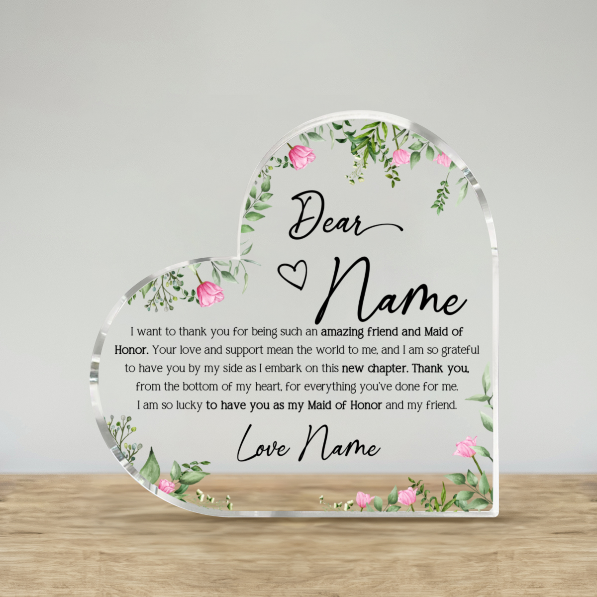 Personalized Maid of Honor Gift, Maid of Honor Acrylic Plaque, Gift for Maid of Honor, Thank you Gift from Bride, Custom Wedding Gift